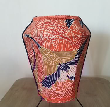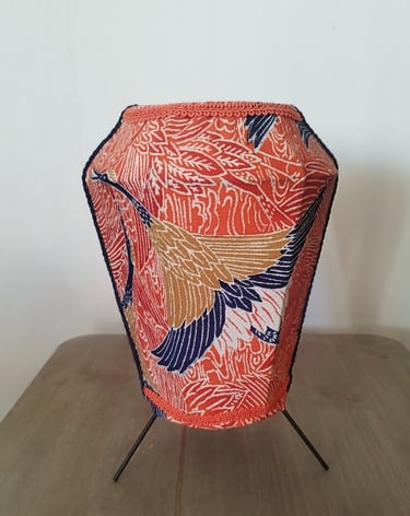 L’abat-jour n’est pas seulement un objet utilitaire. C’est une invitation à la contemplation. En y intégrant des tissus japonais, j’ai trouvé une manière de créer des pièces qui racontent, à leur tour, une histoire — celle où se rencontrent mes émotions, mes gestes, et la poésie du Japon.