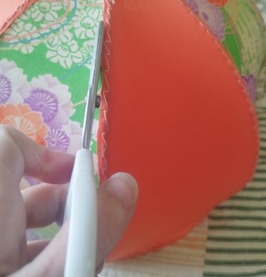 Je sélectionne avec soin les tissus japonais, issus notamment de kimonos recyclés, une démarche qui me permet de donner une seconde vie à des objets du quotidien. J'aime l'idée que ces matériaux, par leur mise en lumière, révèlent de nouveaux horizons, magnifiant les motifs raffinés et délicats qui les ornent. L'emploi des kimonos recyclés s'inscrit également dans une volonté de revaloriser des matières nobles et de proposer une alternative éco-responsable.