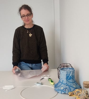 Formée auprès de l'atelier du Chat qui veille et de l’Atelier de l’Estran, j’ai appris l’art exigeant et délicat de la confection d’abat-jour en tissu tendu et contre-collé, dans le respect des gestes traditionnels. Ces apprentissages m’ont transmis le goût du travail bien fait.